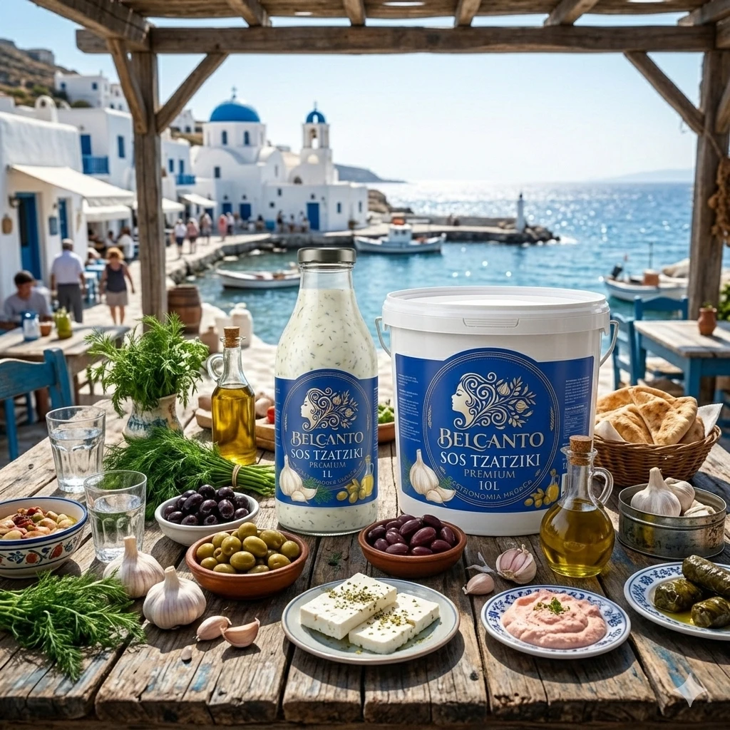 Sos Tzatzyki ChefMaster Premium 10L – tradycyjny grecki sos na bazie jogurtu (35%), ogórka (15%) i czosnku. Autentyczny smak prosto z Grecji, receptura opracowana z greckimi technologami żywności. Idealny do kebabów, gyrosów, mięs z grilla, warzyw i jako dip. Wiaderko 10L z pokrywką. Certyfikaty HACCP i IFS. Dostawa chłodnicza B2B 24-48h w całej Polsce.